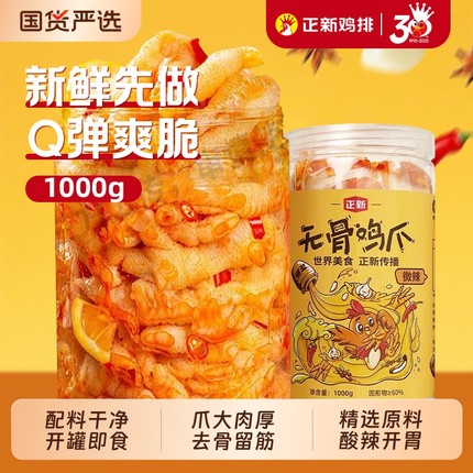 白菜!正新 即食香辣无骨鸡爪罐装500g*2罐新低21.91元包邮(10.95元/罐)