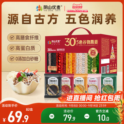 阴山优麦 30天即食5色谷物燕麦片中秋礼盒 1.05kg/30小包 立减+券后39.9元包邮