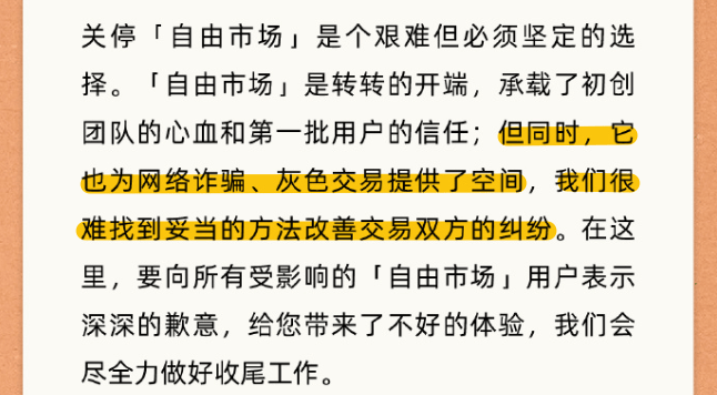 前段时间,转转突然宣布要关掉自己的自由市场了。