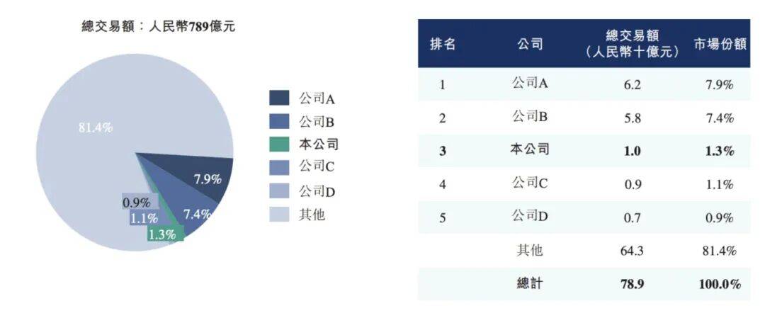 根据弗若斯特沙利文报告,按 2024 年手机装置的总交易额计,爱回收的交易额为 62 亿元,市场份额为 7.9%,转转的交易额为 58 亿元,市场份额为 7.4%。