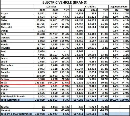根据 ACEA (欧洲汽车制造商协会)的数据,在今年 7 月份,特斯拉销量同比下跌了 42.4%,在欧盟这个 4.5 亿人口市场,它只卖了 6600 台。