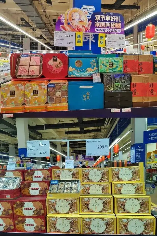 最近,“定焦One”在北京几家大型超市走访发现,礼盒装月饼的价格大多卡在50~300元之间,口味主打低糖,保质期也普遍缩短到了90天,让用户少了防腐剂的顾虑,多了几分安心。
