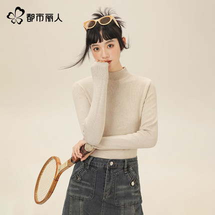 都市丽人 2025新款 女士半高领修身显瘦针织毛衣新低34.9元包邮
