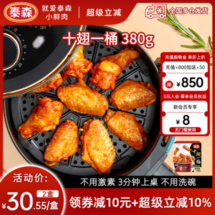 Tyson 泰森 奥尔良风味十翅一桶 380g*2盒 57.9元包邮(29元/盒)