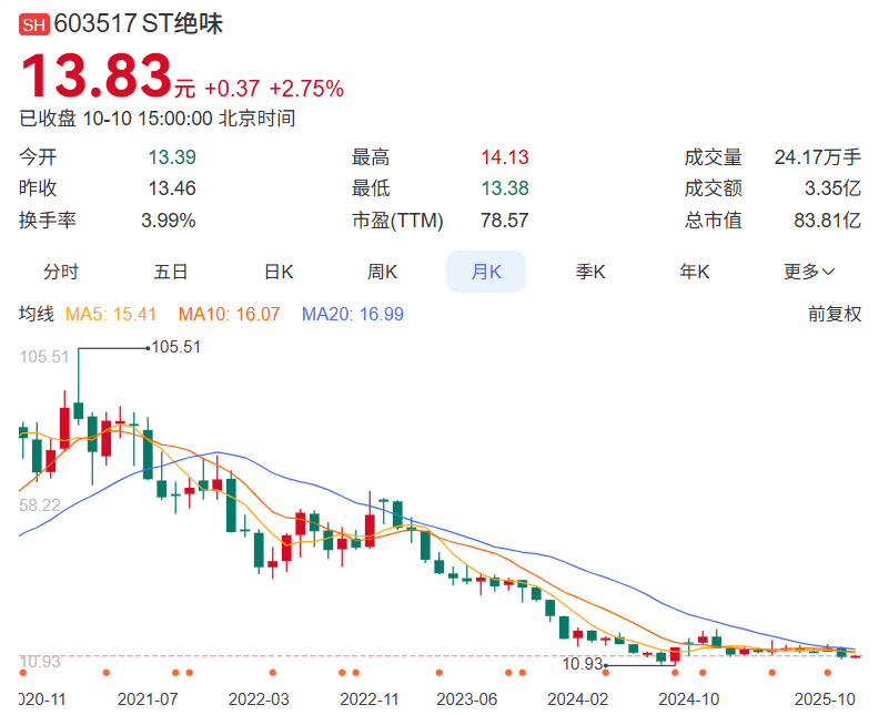 对了,上个月月底,绝味还戴帽了,现在叫 ST 绝味。