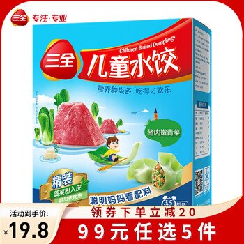 颜色丰富个头小巧,正好适合孩子的饮食习惯,目前京东商城三全官方旗舰店售价¥23.8,领取满99减20优惠券、满119减62券,下单5件,实付¥37包邮,折合¥7.4/件,虾仁胡萝卜/三文鱼芥菜/鳕鱼海苔等多口味水饺、馄饨可选,可以给孩子改善一下口味。