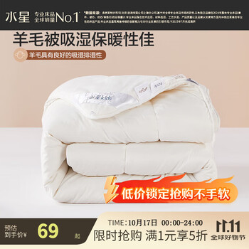 水星家纺 澳洲羊毛 抗菌冬被被芯200×230cm新低89元包邮