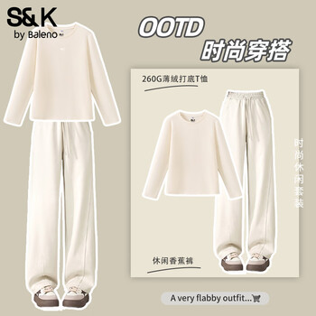 Baleno 班尼路 S&K系列 女士260g薄绒打底T恤+休闲香蕉裤套装新低49.9元包邮