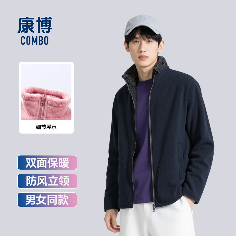 康博品牌创建于1976年,是波司登国际控股有限公司旗下六大“中国名牌”之一。这款Combo 康博 2025秋冬新款情侣双面穿抓绒衣保暖绒衣,货号:KBJ62881245,双面可穿,A面摇粒绒,B面珊瑚绒,细腻柔软,亲肤不刺激;绅士立领设计,贴合脖颈更温暖,领部毛圈,柔软舒适。