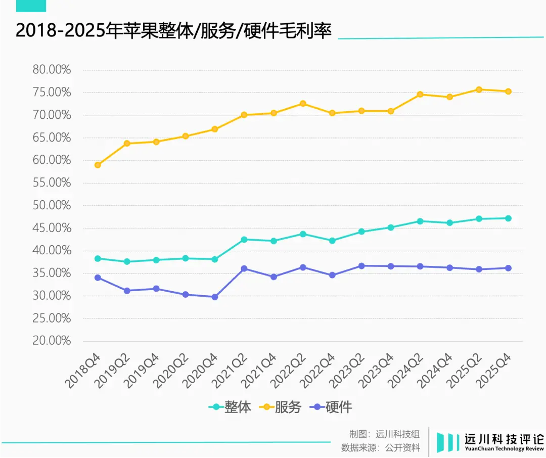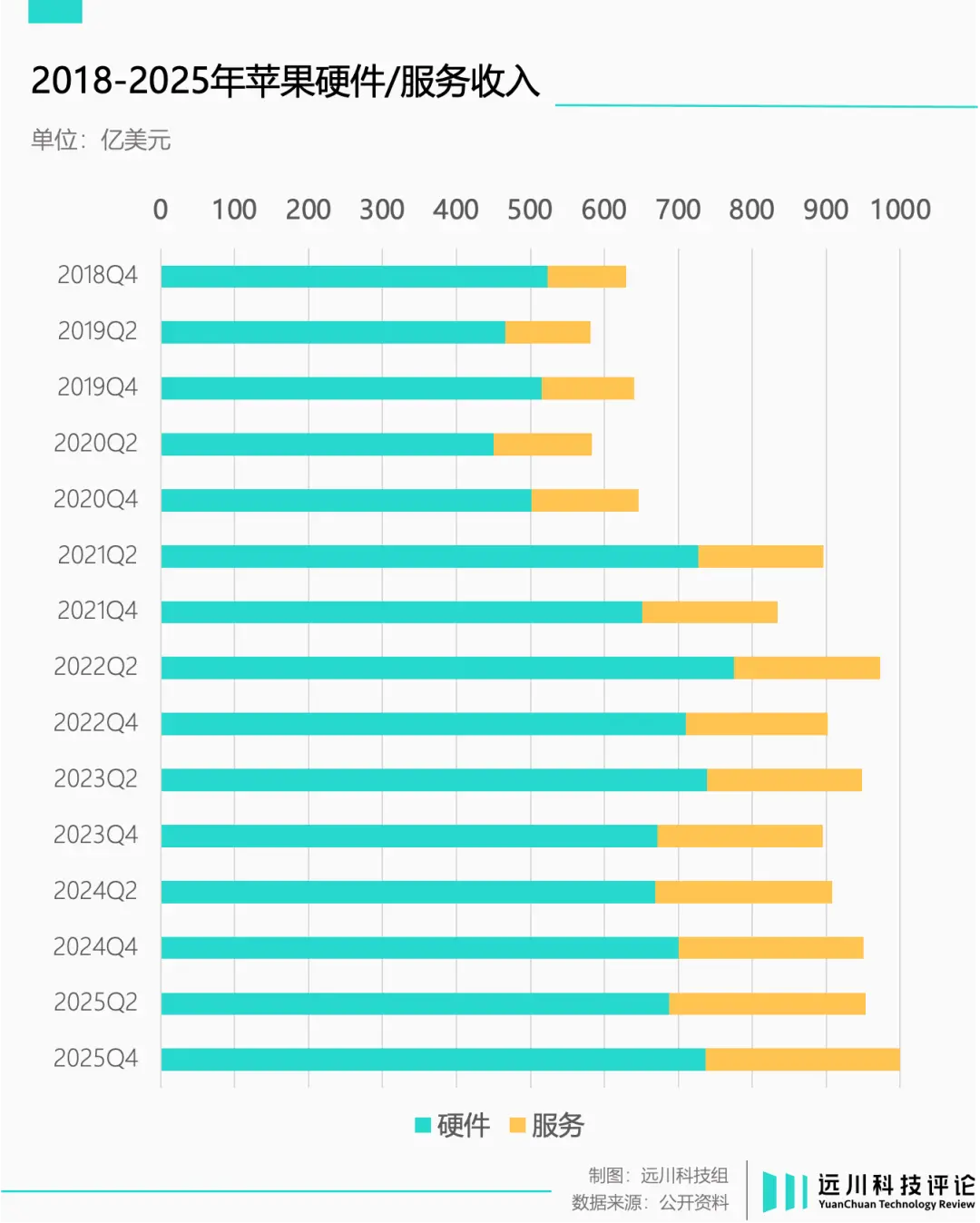 这也从侧面反映了苹果当下的经营状态——硬件乏力,软件救场。