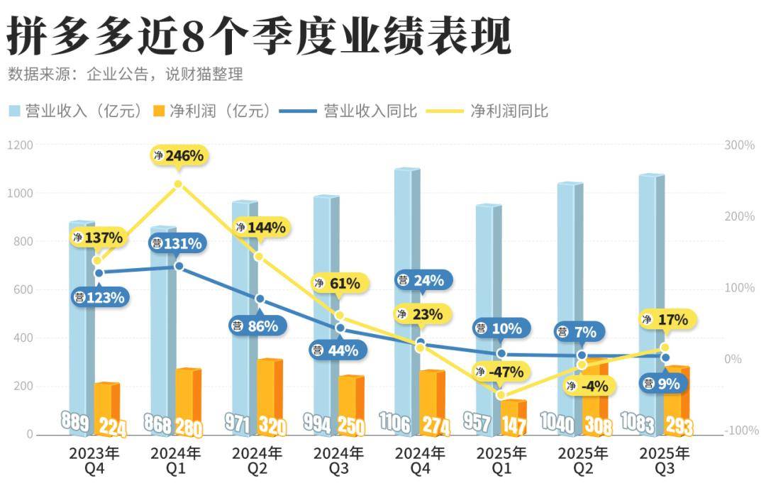 三季度,拼多多实现总收入1082.77亿,同比增长9%;