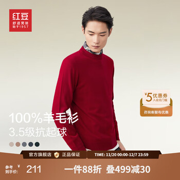 100%羊毛,12针26支,细腻轻薄,保暖舒适。目前京东商城杉杉官方旗舰店售价¥399,满1件6.5折,领取399-20元优惠券,叠加¥189-80元券,实付新低159包邮,多色码全,以往低价239元以上!