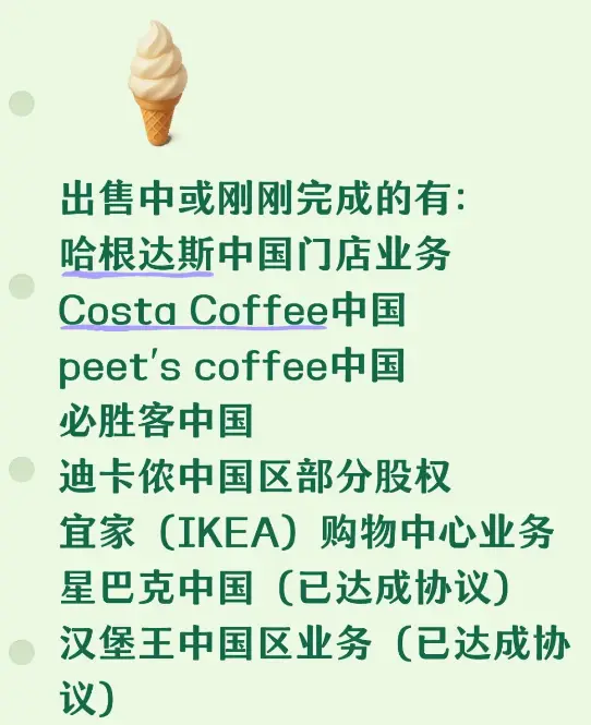 中国业务 “ 卖身 ” 的事早就有之,上一波引发这种讨论,还是七八年前肯德基、麦当劳前后脚出售中国业务。