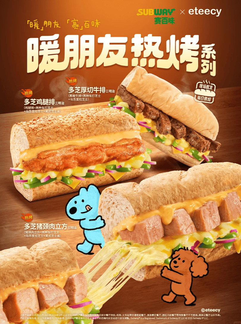 直到 2023 年牵手了富瑞食,中国人自己上了,赛百味才开窍,一手抓中国人的饮食习惯,搞起了暖朋友热烤,一手库库抓热点,毕竟紧跟最近流行的健康餐食浪潮,打起了翻身战。
