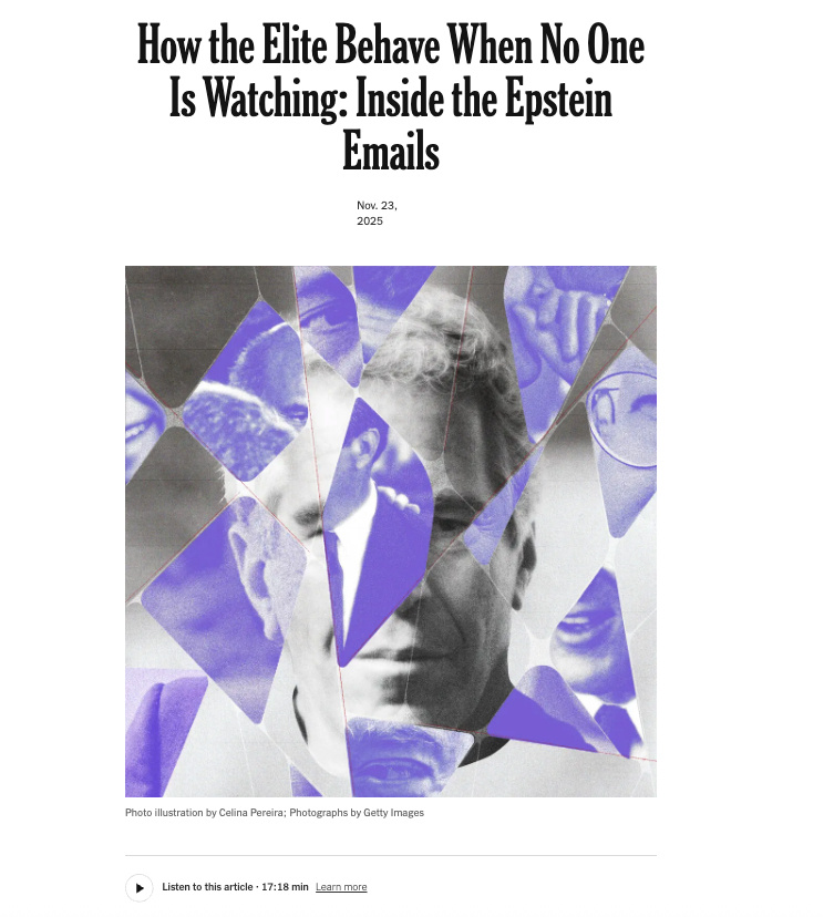 纽约时报的这篇报道为我们做了一次揭秘。👇🏻是GPT5.1提取的长文分析,主要是关于爱泼斯坦运作这个庞大顶层朋友圈的模式: