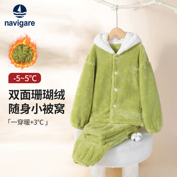 NAVIGARE 意大利小帆船 儿童双面一体绒睡衣家居服套装(120-165码)2色新低89元包邮