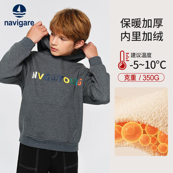 Navigare 意大利小帆船 儿童加绒连帽卫衣 多色69元包邮