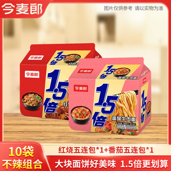 今麦郎方便面1.5倍番茄牛肉红烧牛肉味泡面大分量面饼袋装速食食品 【10袋组合约1255g】红烧+番茄 15.89元