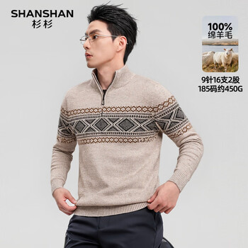100%绵羊毛,9针16支2股编织,百搭提花,半拉链立领,185码克重450g,柔软亲肤,舒适保暖。目前京东商城SHANSHAN杉杉官方旗舰店售价¥316,领取满1享5折优惠券,下单实付¥158包邮,新低价,三色码全。