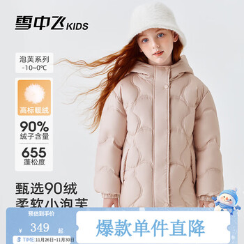 雪中飞 轻暖系列 男女童连帽面包羽绒服 多色 110~170码新低119元包邮