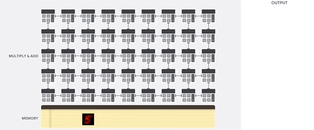核心思路,是专门对 AI 最常用的矩阵乘法做优化,搞了一个叫 “ 脉动阵列 ” 的方法。