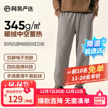 345g/㎡ 暖绒中空蓄热,抗静电不伤肤,四向高弹科技,手感柔滑不易起球,目前京东商城网易严选服饰旗舰店售价206.4元,立减77.4元,领取99-30元优惠券、160-20元优惠券,实付79元包邮,卫裤此价