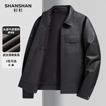 白菜!SHANSHAN 杉杉 2025年秋季 男士头层牛皮翻领夹克外套新低459元包邮