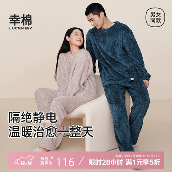 白菜!LUCKMEEY 幸棉 男女款长毛绒防静电家居服套装新低58元包邮
