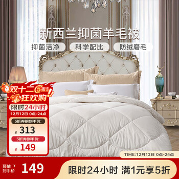 5折活动再来,100%澳洲羊毛填充,加厚冬被净重8斤冬被被芯才139!目前京东旗舰店售价278元,领取5折优惠券,实付新低139元包邮