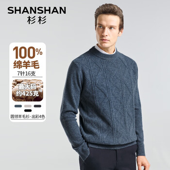 SHANSHAN 杉杉 男士100%绵羊毛提花加厚保暖羊毛衫 SSM234387513 159元包邮