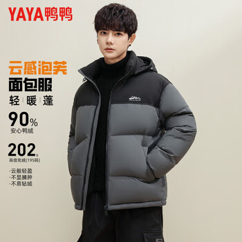 鸭鸭 25新款 男款202g高充绒短款连帽拼色面包服 YE4B713902F新低219元包邮