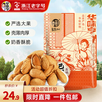 壳薄易剥,酥脆香醇。目前京东商城华味亨休闲零食旗舰店售价¥27.8,领取¥3优惠券,到手实付¥24.9包邮,闲暇必备的健康零食。
