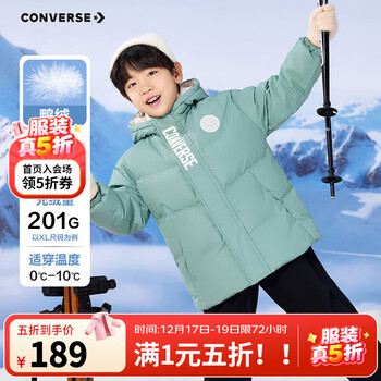 白菜!201g高充绒,Converse 匡威 2025新款 男女童连帽面包服羽绒服(110-160cm)189元包邮