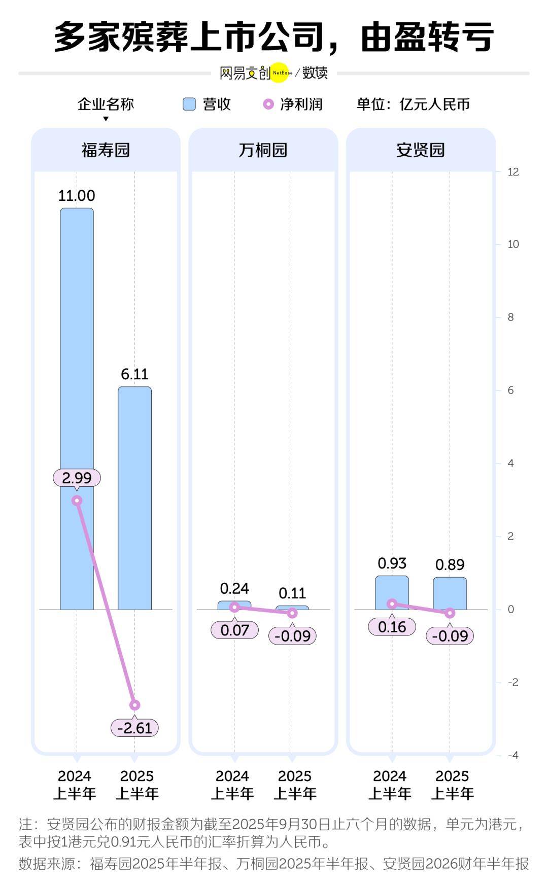 不只福寿园,同样以“卖墓地”为核心生意的万桐园、安贤园等上市企业,都在面对“寒冬” [5][6]。亏损,成了殡葬行业共同的难关。