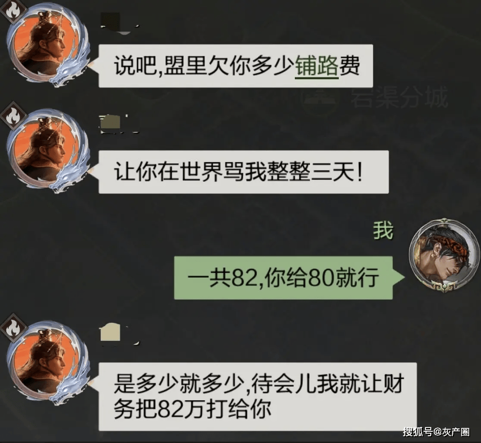 然后这事让金主本人知道了,于是金主亲自出面和这个人聊,问盟里到底欠了多少铺路费,能值得在世界频道骂自己三天。