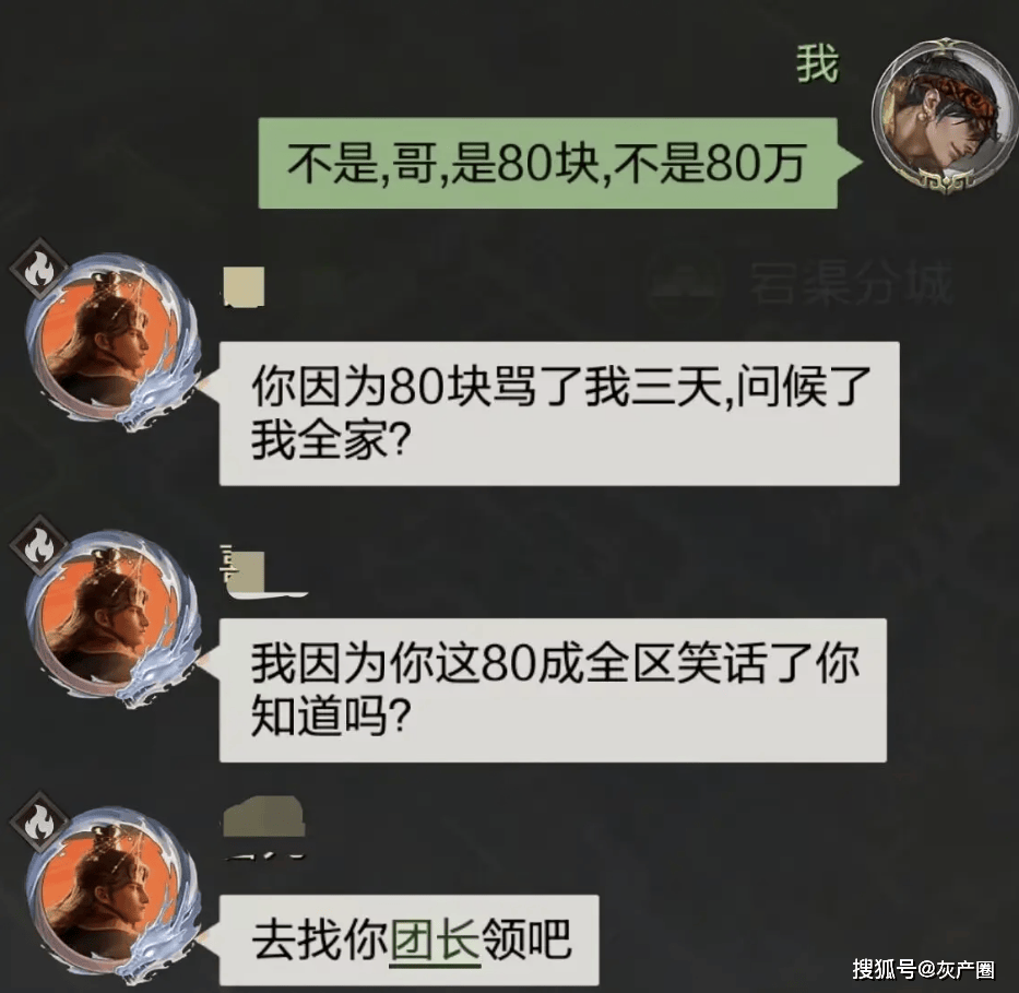 某铺路团成员被拖欠了80元人民币的铺路费,穷尽所有手段讨要很长时间都没能要到,最后没办法了,实在是气不过,就在世界频道狂骂这个盟的金主,连续骂了三天三夜,骂的这个游戏服里人尽皆知这个盟的金主欠铺路团钱了。