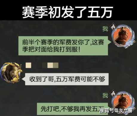 涉事赛季,盟里金主给的初始军费是5万元,盟主对金主说不够,金主回复先打,后面再给5万。