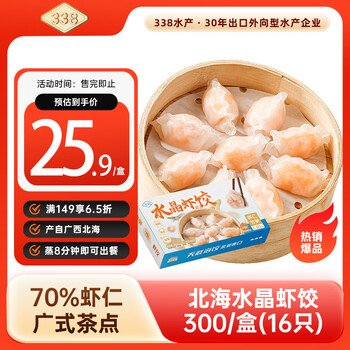 虾含量≥70%,万景 338 广式茶点水晶虾饺 300g/盒*4盒新低55.86元包邮(折13.96元/盒)
