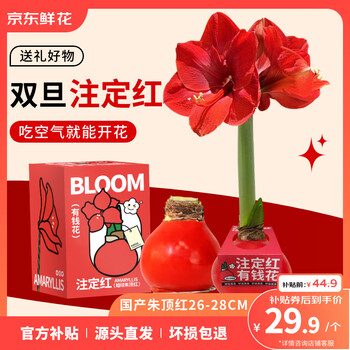 京东鲜花 鸿运顶红朱顶红礼盒版 26-28cm(赠圣诞小围巾+小帽子装饰)29.9元包邮