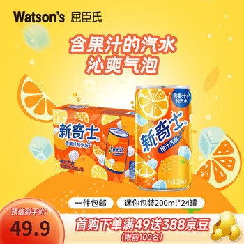 屈臣氏 新奇士 橙汁汽水200ml*24罐34.9元包邮(1.45元/罐)