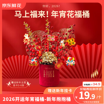 京东鲜花 2026开运年宵花福桶 赠新年主题挂卡3-6张19.9元包邮