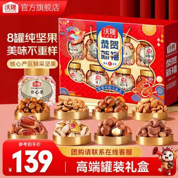 沃隆 恭贺新禧 高端坚果礼盒 1400g(8大罐纯坚果)119元包邮