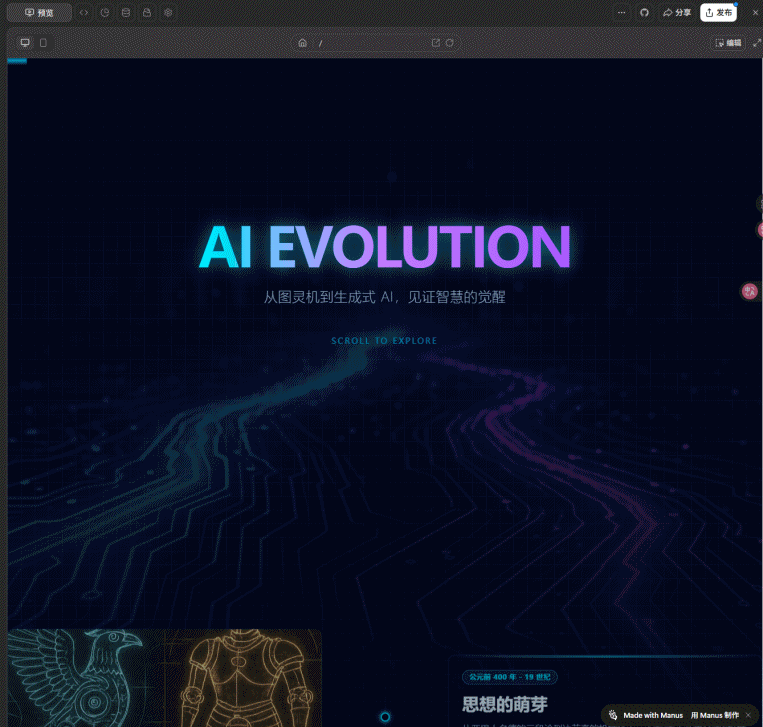 8 分钟不到,Manus 就给我生成了一份完整可以互动的网页,一次成功,速度也比起年初快了不少。