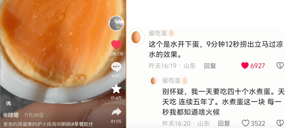 再加上一个人因为懂煮蛋就火遍全网的故事,堪比网络爽文照进现实,多重因素下,“ 蛋神 ” 就此诞生。