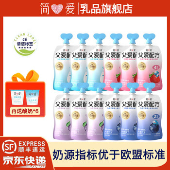 简爱 父爱配方 吸吸袋酸奶 0%蔗糖原味发酵乳 100g*12袋+赠酸奶6杯55.81元包邮(含赠3.65元/袋)