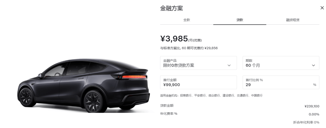 另外Model Y L首次开放5年0息,首付9.99万起,月供3985元,对比之前的3年0息方案,月供6641元,这个还贷压力显然是小了很多。