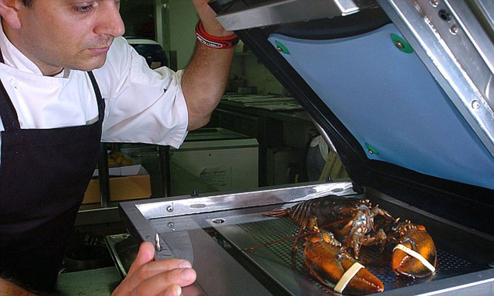 既然煮不行,英国的新规要求必须先让它们“失去知觉”。目前最受推崇的方法是电击致昏。