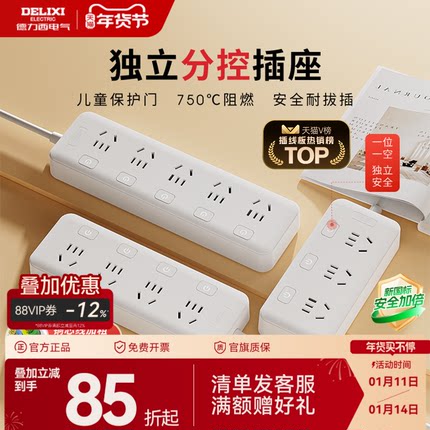850°高温阻燃,一体化精选铜芯。目前三位五孔1m款天猫商城德力西官方旗舰店特价¥19.9,下单8.5折,超级立减¥1,领取¥2优惠券,首单礼金¥1,APP端商品详情页右上角点“…”-淘金币-足迹加抵-加购物车,淘金币可抵扣¥0.59,实付¥12.31包邮,另有其余规格可选,价格略贵。