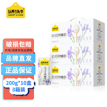 认养一头牛 法式经典常温酸奶200g*10盒*3箱67.9元包邮(2.26元/盒)