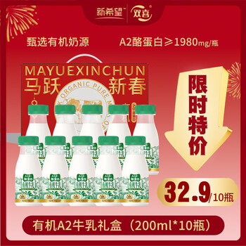 白菜!新希望 双喜 3.8g有机A2β-酪蛋白低温牛乳礼盒装 200ml*10瓶新低21.33元包邮(2.13元/瓶)